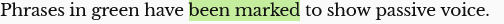 Passive voice: Hemingway Editor will highlight instances of passive voice in GREEN and suggest alternative phrasing in the active voice.