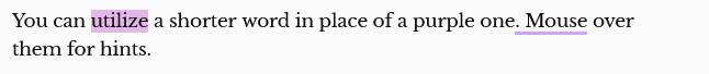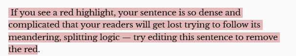 Complex sentences: The editor will identify sentences that are long, complex, or difficult to read in PURPLE and suggest ways to simplify them.